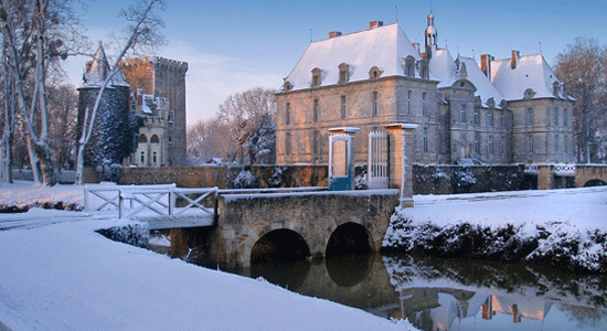 | Chateau de St Louis in Charete France (from http://www.thegoodlifefrance.com/winter-holidays-france-style-with-wow-factor/ ) |